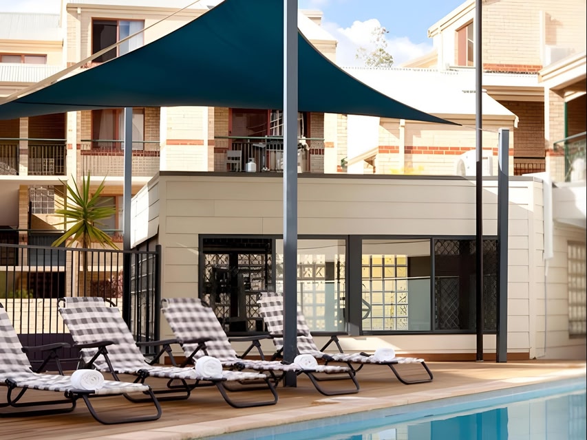 With the thriving East End on the doorstep, a 5-minute walk to the WACA sports grounds, the city centre only a minute's walk away, and only 100 metres from the free CAT Bus System, this apartment hotel has the perfect city address for convenience and relaxation. It is located at 190 Hay Street between the crossroads Bennett and Plain streets. City Beach can be reached in a 25-minute drive and Perth Airport is situated some 20 km away. The hotel is extremely well priced considering its location and facilities. The staff are friendly and helpful. Guests will experience the warm, sunny climate, pristine coastline and relaxed lifestyle during their stay in Perth. Renovated in 2009, the apartment hotel offers a total of 50 apartments, a lobby, lift access, WLAN Internet access (for a fee) and a car park. Guests can expect all the comforts of home at this hotel. Each apartment features a fully equipped kitchen complete with microwave, fridge, oven, cooker, dishwasher, crockery and cutlery and tea and coffee making facilities. A washing machine, clothes dryer and ironing set are also provided in each apartment. Each accommodation is appointed with an en suite bathroom, hairdryer, direct dial telephone, satellite/cable TV, Internet access, a safe and a balcony or terrace. The air conditioning and heating (both individually regulated) ensure guests' comfort. Please note that rooms are not serviced daily. Health conscious guests can avail themselves of outdoor swimming pool and gym, both of which are located on-site.
