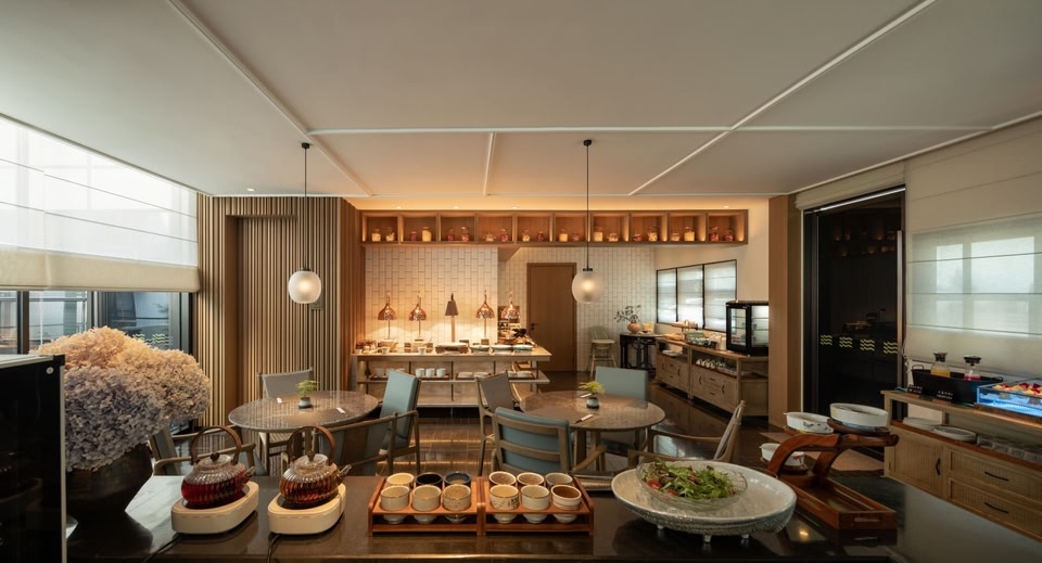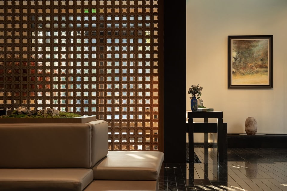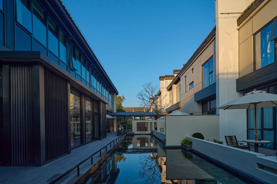 Chinese gardens adhere to the principle of " though made by man , it looks as if created by nature ". The construction of hotel gardens also aims to deeply integrate with the natural environment , fully following the existing elements such as terrain , water bodies ,and plants , adapting to local conditions , and ingeniously applying aesthetic principles such as symmetry , proportion ,and color . It pursues a landscape that is both varied and harmonious , with a sense of unity in diversity,completeness and harmony , creating a unique hotel garden landscape that is " based on tranquility and enlivened by movement ".The water and stones blend together , stretching and contracting in a harmonious way , reminiscent of the scene described in the verse :" At noon ,a painted boat passes under the bridge , and the fragrance of clothes and the figures of people are fleeting ." The world is bustling , with early morning thoroughfares filled with rushing vehicles and late night ferry crossings accompanied by the silent flow of water . Each journey , each stop , leads to a feast of ten miles of spring breeze and a thousand years of cultural heritage ; each city , each inn , offers a place to rest and recharge , seeking the direction of the journey in the ever - flowing stories , and enjoying one ' s own art and distant horizons . Green willows line the city walls , and red flowers bloom deep in the garden ; leaning on the railing by the water , the scene is as soothing as a gentle breeze .One can quietly wait for the moon in the pavilion or count the fish by the railing , and the leisurely and comfortable slow life is found not only in the forest , springs , and wild paths ,but also in the serene and carefree atmosphere hidden in the heart of the bustling city . Where will you moor tonight ?At the long or short pavilion where you meet me . Living in the city yet remaining detached ,mooring at the inn tonight .…