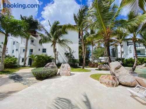 Moderno, Minimalista, Exclusivo配备免费WiFi和户外游泳池,距离多米尼库斯海滩(Dominicus Beach)有不到4分钟步行路程,距离Dye Fore高尔夫球场有不到22公里。这家自助式公寓拥有私人泳池、花园和免费私人停车位。 这家公寓提供露台,享有花园景,配有1间卧室、起居室、平板电视、带冰箱和烤箱的设施齐全的厨房以及1间带坐浴盆的浴室。这家空调公寓还提供休息区、洗衣机以及1间带淋浴设施的浴室。. ..