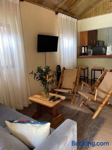 Hacienda La Huerta Puerto Plata, 2 BDR坐落于Maimón,距离皮克迪迭戈仅有35公里,提供户外游泳池、酒吧和免费WiFi。这家自助式度假屋拥有私人泳池、花园和免费私人停车位。 这家度假屋享有花园景,配备露台,配有2间卧室、起居室、有线频道平板电视、设施齐全的厨房以及1间带淋浴设施和浴缸的浴室。这家度假屋还配备休息区、洗衣机以及1间带免费洗浴用品的浴室。 这家度假屋距离海洋世界有14公里,距离Fortaleza San. ..