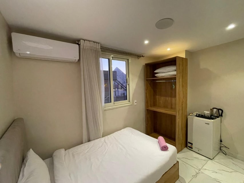 Stunning Views and Luxurious AmenitiesExperience breathtaking mountain views and exceptional service at Pyramids Solar Boat Inn. Enjoy the comfort of air-conditioned rooms with free WiFi, a flat-screen TV, and a safety deposit box. Indulge in a delicious buffet, à la carte, or vegetarian breakfast to start your day off right.Convenient ServicesBenefit from room service and tour assistance at your fingertips. The multilingual staff at the 24-hour front desk are ready to cater to your needs in Arabic, German, English, and Spanish. Whether you're looking to relax on the terrace or explore the city through cycling, this 5-star hotel has it all.Prime LocationLocated just 800 meters from the Great Sphinx, Pyramids Solar Boat Inn offers easy access to popular attractions like Giza Pyramids and Cairo Tower. Make your stay in Cairo unforgettable and book your room today!
