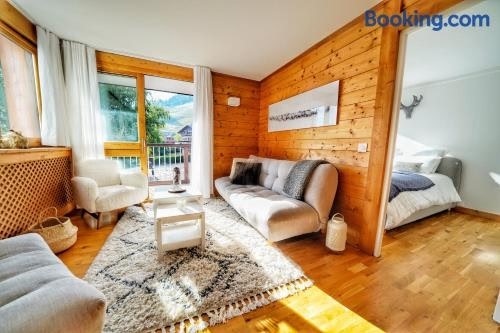 Featuring a pool with a view and city views, La Ménandière is located in Megève. This apartment provides free private parking, a 24-hour front desk and free WiFi. The property is non-smoking and is set 36 km from Halle Olympique d'Albertville.