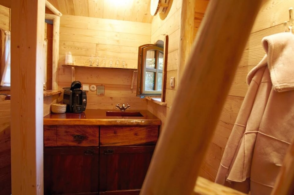 Natur-Resort Tripsdrill provides a unique stay in wooden caravans that are in the style of shepherd wagons and treehouses. The heated accommodation has an outdoor seating area with views of the Swabian surroundings and the Michaelsberg Mountain.