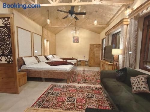 Vacay Datcha 3 bedroom and attic bedroom位于Kūd,提供免费WiFi和空调。客人可以使用带阳光露台的花园。 这家度假屋提供平板电视以及带免费洗浴用品、吹风机和浴缸的私人浴室。部分房间还提供带冰箱、洗碗机和烤箱的厨房。 这家住宿提供自助、单点或素食早餐。 客人还可以在共用休息室放松身心。 查谟机场距离住宿有102公里。