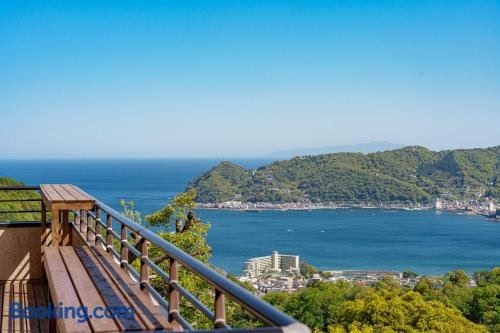 プライベートリゾート日暖坐落于静冈县的Kami-taga,拥有阳台,享有山景。这家住宿距离长滨海滩(Nagahama Beach)有2.6公里,提供花园和免费私人停车位。 这家别墅配有5间卧室、1间浴室、床上用品、毛巾、平板电视、用餐区、设施齐全的厨房以及海景露台。这家空调别墅还配备洗衣机以及1间带坐浴盆、淋浴设施和浴缸的浴室。 这家别墅的客人可以使用温泉浴池。 プライベートリゾート日暖距离修善寺有30公里,距离箱根汤本站有31公里。