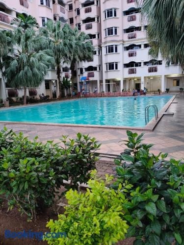 Kuhara Homestay位于沙巴的斗湖,配有阳台。这家住宿提供私人泳池、免费WiFi和免费私人停车位。 这家空调公寓配有3间卧室、起居室、带冰箱和电热水壶的设施齐全的厨房以及2间带坐浴盆和淋浴设施的浴室。这家公寓也提供休息区和2间浴室。 客人可以使用这家公寓的室内泳池。 斗湖机场距离住宿有28公里。