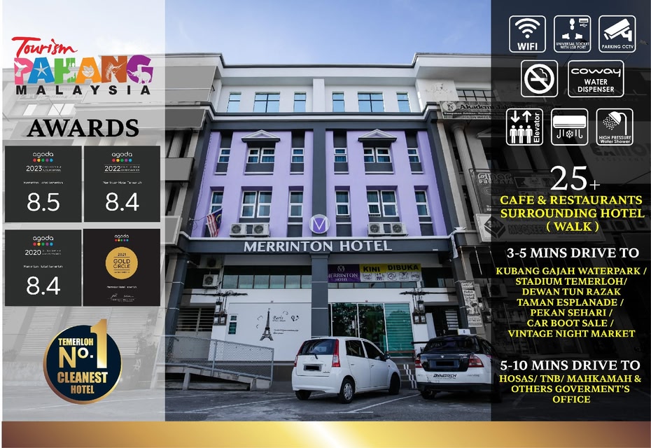 Merrinton Hotel Temerloh is offering accommodation in Temerloh. Featuring a shared lounge, the 3-star hotel has air-conditioned rooms with free WiFi, each with a private bathroom. At the hotel, the rooms come with a desk and a flat-screen TV.