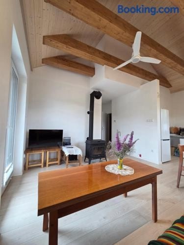 Oaza Spokoju位于马佐夫舍省的Wólka Iłowiecka,拥有阳台。这家住宿距离维拉诺夫宫有45公里,提供花园和免费私人停车位。 这家度假屋提供露台,享有花园景,配有2间卧室、起居室、平板电视、带冰箱和微波炉的设施齐全的厨房以及1间带淋浴设施的浴室。1间浴室提供吹风机。 华沙肖邦国际机场距离住宿有54公里。