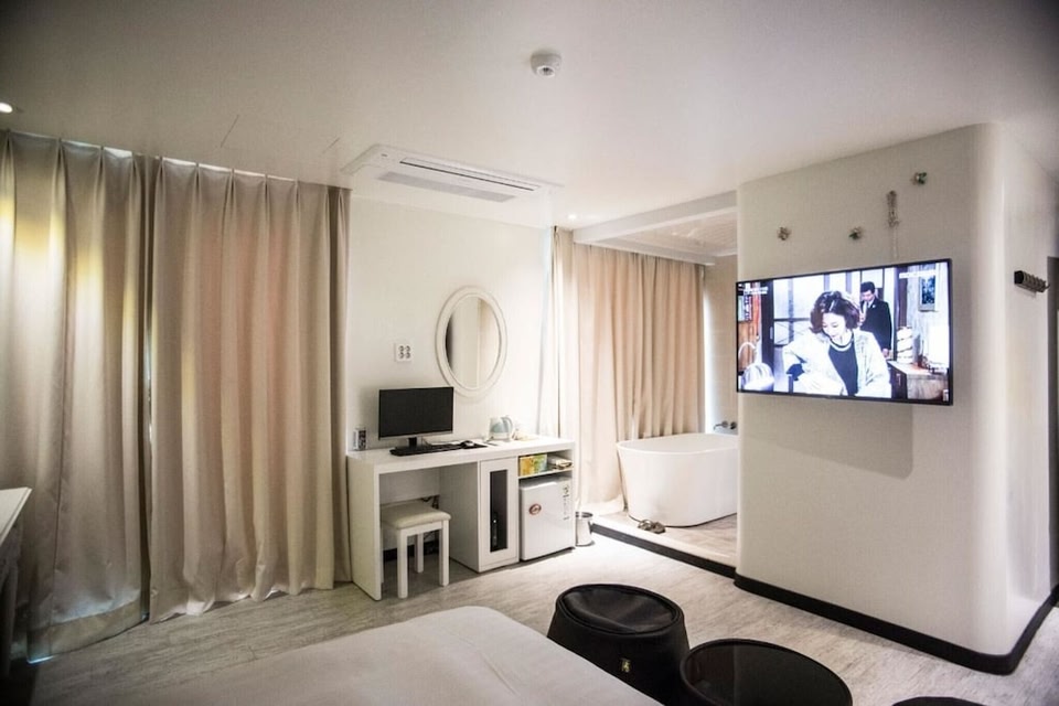 Location You’ll be sleeping tight! Hotel «Jeonju Deokjindong Pin and Fit House» is located in Jeonju. This hotel is located in 3 km from the city center.At the hotel Free Wi-Fi is available on the territory. Ask for more information when checking in. Specially for tourists who travel by car, there’s a free parking zone.Room amenities In the room, for you, there is a TV. The room equipment depends on its category.