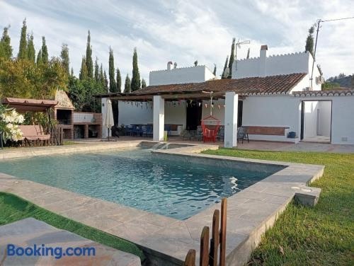 Villa Aguacate con Apto享有池景,提供季节性室外泳池和庭院,距离埃尔普拉佐海滩约有1.9公里。这家自助式别墅拥有私人泳池、花园和免费私人停车位。 这家别墅配有5间卧室、3间浴室、床上用品、毛巾、平板电视、用餐区、设施齐全的厨房以及山景露台。这家空调别墅还配备休息区、洗衣机以及3间带浴缸或淋浴设施的浴室。 马拉加机场距离住宿有67公里。