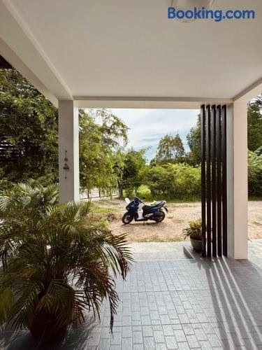 Sa-nguan Villa位于帕岸岛的通萨拉,配有阳台,享有花园景。这家住宿距离通萨拉海滩(Thong Sala Beach)有2.6公里,提供露台和免费私人停车位。 这家空调别墅配有2间卧室、起居室、带冰箱和电热水壶的设施齐全的厨房以及1间带坐浴盆和淋浴设施的浴室。这家别墅还配备平板电视以及1间带免费洗浴用品的浴室。 这家别墅距离Phaeng Waterfall有4.1公里,距离玛岛有13公里。苏梅国际机场距离住宿有61公里。