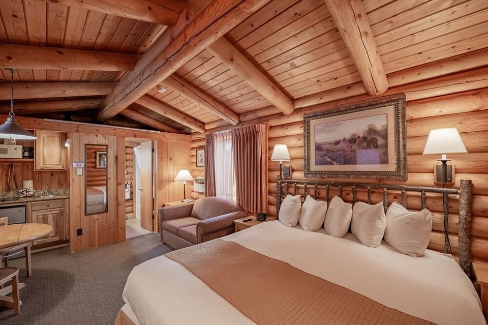 This rustic lodge features individual log cabins, complete with many of the comforts of home and is situated on 4 acres of forest, only a short distance from Jackson Hole town centre.